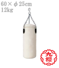 白帆布製サンドバッグ 鎖・S環付き 60cm×直径25cm 12kg